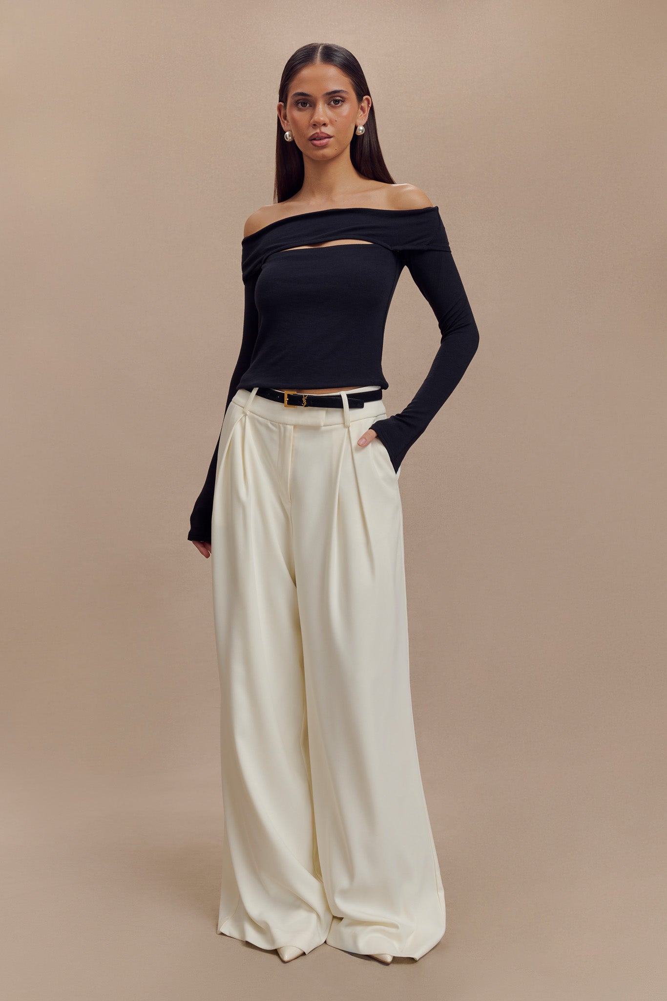 Charlotte Off Shoulder Knit Long Sleeve Top - Ivory