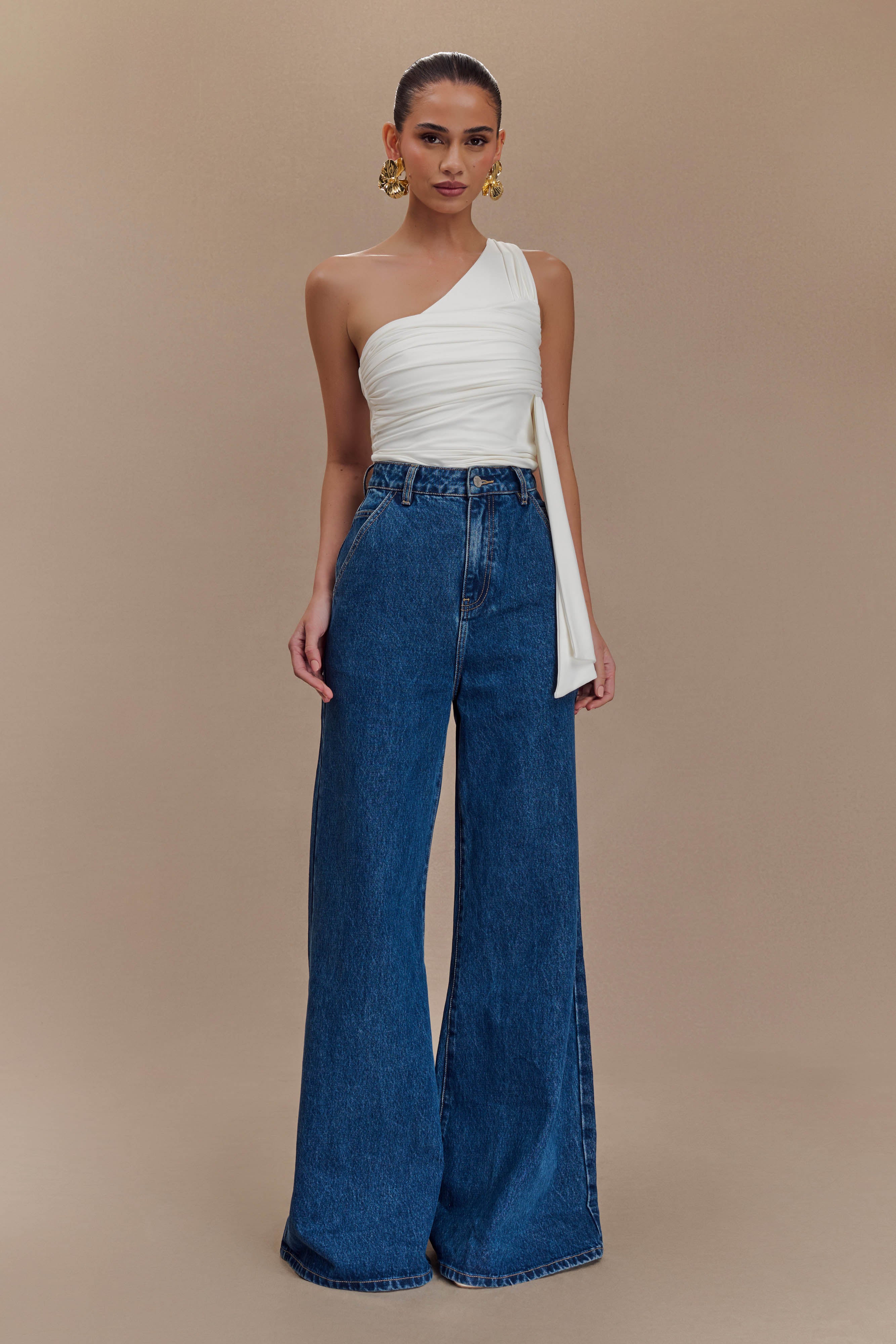 Sera One Shoulder Recycled Nylon Top With Drape - Ivory