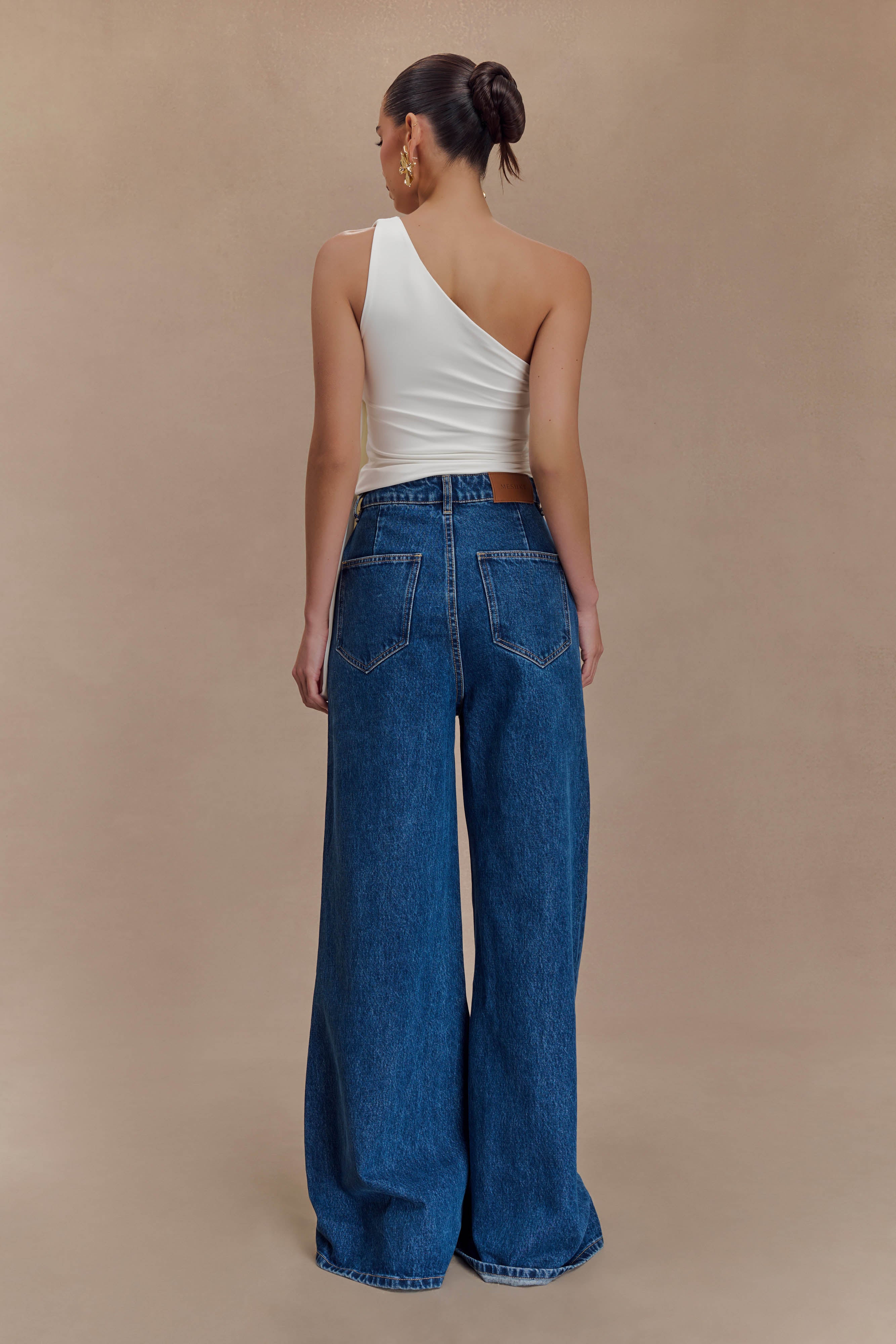 Krista Denim Off Shoulder Top - Dark Blue