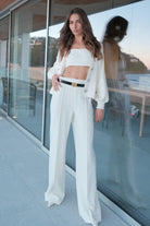 The ANTONIA Pleated Wide Leg Pants are the epitome of sophisticated style. These high-waisted pants feature elegant front pleat details that add a touch of refinement. The wide leg design offers a flattering and comfortable fit, while the side zip ensures a sleek and seamless look. Pair these versatile pants with the Antonia Strapless Cut Out Top for a chic and cohesive ensemble perfect for any occasion.