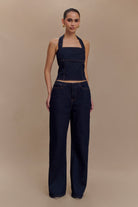 The CAITLIN Mid Rise Denim Flare Jeans offer a modern take on classic denim, designed for both style and comfort. With a flattering mid-rise waist and a sleek, straight-leg fit, these jeans elongate the legs while maintaining a relaxed silhouette. The fly front closure ensures a secure fit, while the front and back pockets add both functionality and detail. Finished with a waistband-less design for a smooth, contemporary feel, these jeans are perfect for elevating your everyday casual look. Pair with the Dayna Denim Halter Top for a complete, effortlessly chic ensemble.