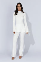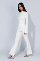 Sensible and sophisticated, the JOVIE White Knit Pants are the definition of casual chic! She sports a trendy, straight-leg cut with loose hems and an elasticated waist for a snug, curvy fit. Her ribbed knit texture and custom viscose plus polyester fabric blend feels absolutely soft and divine against bare skin. She’s designed to let you show off your shape in style and comfort. Modest and modish, Jovie’s a capsule wardrobe essential.