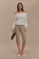 Layla Flared Crepe Capri Pants - Mushroom