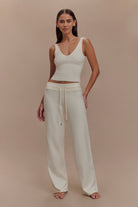 The NATALYA Knit Wide Leg Pants are the perfect combination of cozy comfort and chic style. Designed with a high-waisted fit and an adjustable drawstring elastic waist, these pants provide a flattering and customisable fit. The straight-leg silhouette offers a sleek, modern look, while the soft knitted fabric ensures all-day comfort and effortless wear. Ideal for lounging or casual outings, these pants pair seamlessly with the Natalya Ribbed Knit Cami Top for a coordinated, elevated knitwear ensemble that exudes relaxed sophistication.