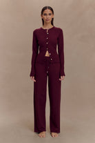 The NATALYA Knit Wide Leg Pants are the perfect combination of cozy comfort and chic style. Designed with a high-waisted fit and an adjustable drawstring elastic waist, these pants provide a flattering and customisable fit. The straight-leg silhouette offers a sleek, modern look, while the soft knitted fabric ensures all-day comfort and effortless wear. Ideal for lounging or casual outings, these pants pair seamlessly with the Natalya Ribbed Knit Cami Top for a coordinated, elevated knitwear ensemble that exudes relaxed sophistication.