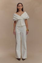 Redefine your denim collection with the RAYNE Wide Leg Denim Jeans, a sleek combination of comfort and sophistication. These high-waisted jeans feature a timeless wide-leg silhouette that elongates the legs and exudes effortless style. Designed with a classic button front closure and subtle stitching details, they offer a clean and polished look. Pair them with the Rayne Off Shoulder Denim Top for a chic, coordinated ensemble that transitions seamlessly from day to night, embodying confident, modern elegance.
