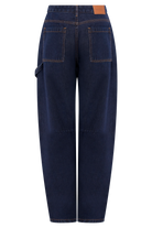 Step up your denim game with the RENATA Barrel Denim Jeans, a statement silhouette designed for modern impact. Featuring a low-rise waist and voluminous balloon legs, these jeans are finished with a fly front opening and a gold button for a refined touch. Back yoke detailing with topstitching adds structure, while side straps, belt loops, and functional pockets bring both style and utility. Crafted in classic denim, this dress delivers a fresh take on a wardrobe essential.