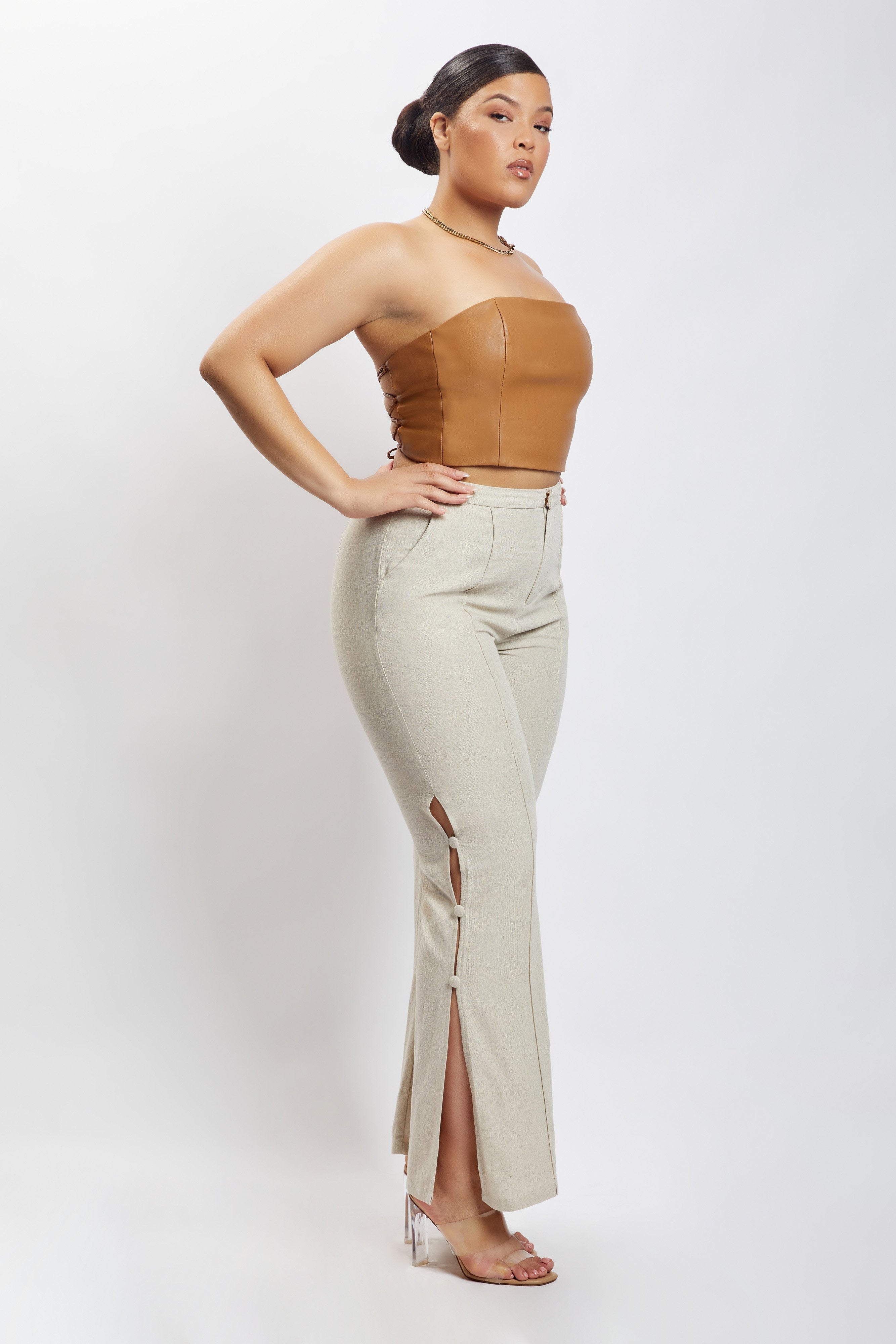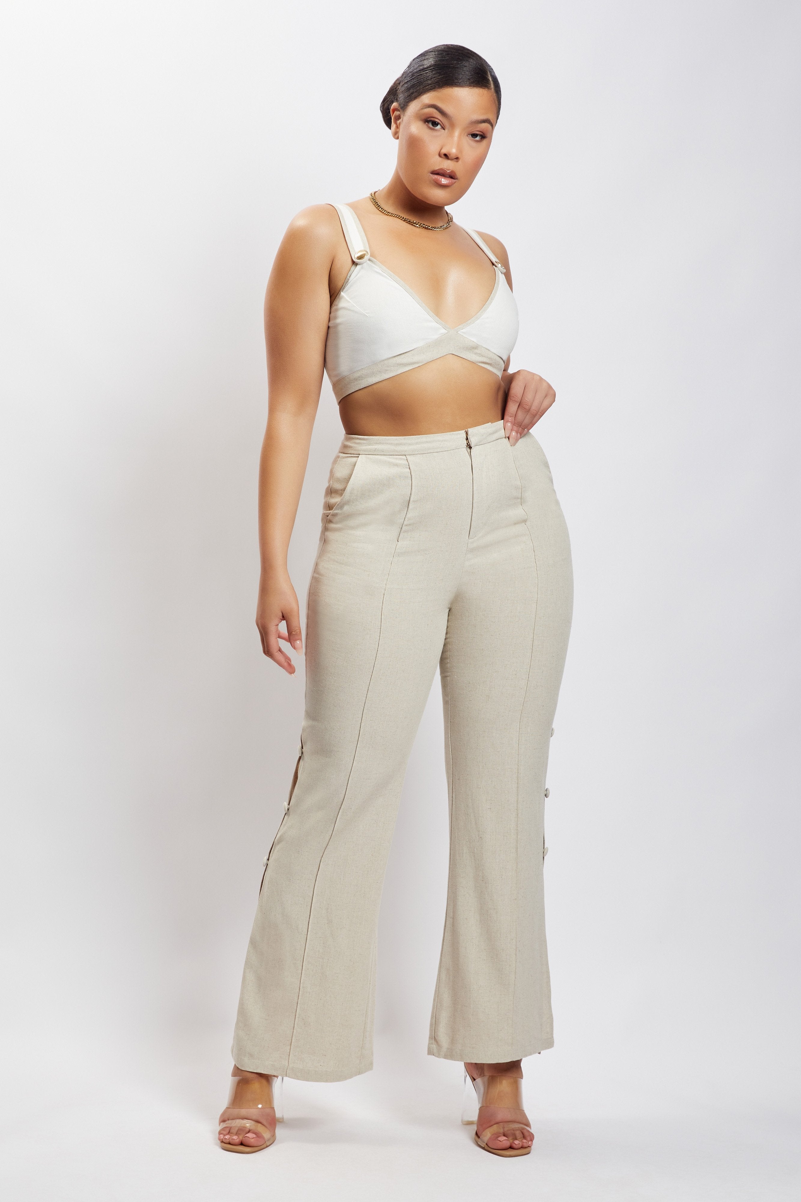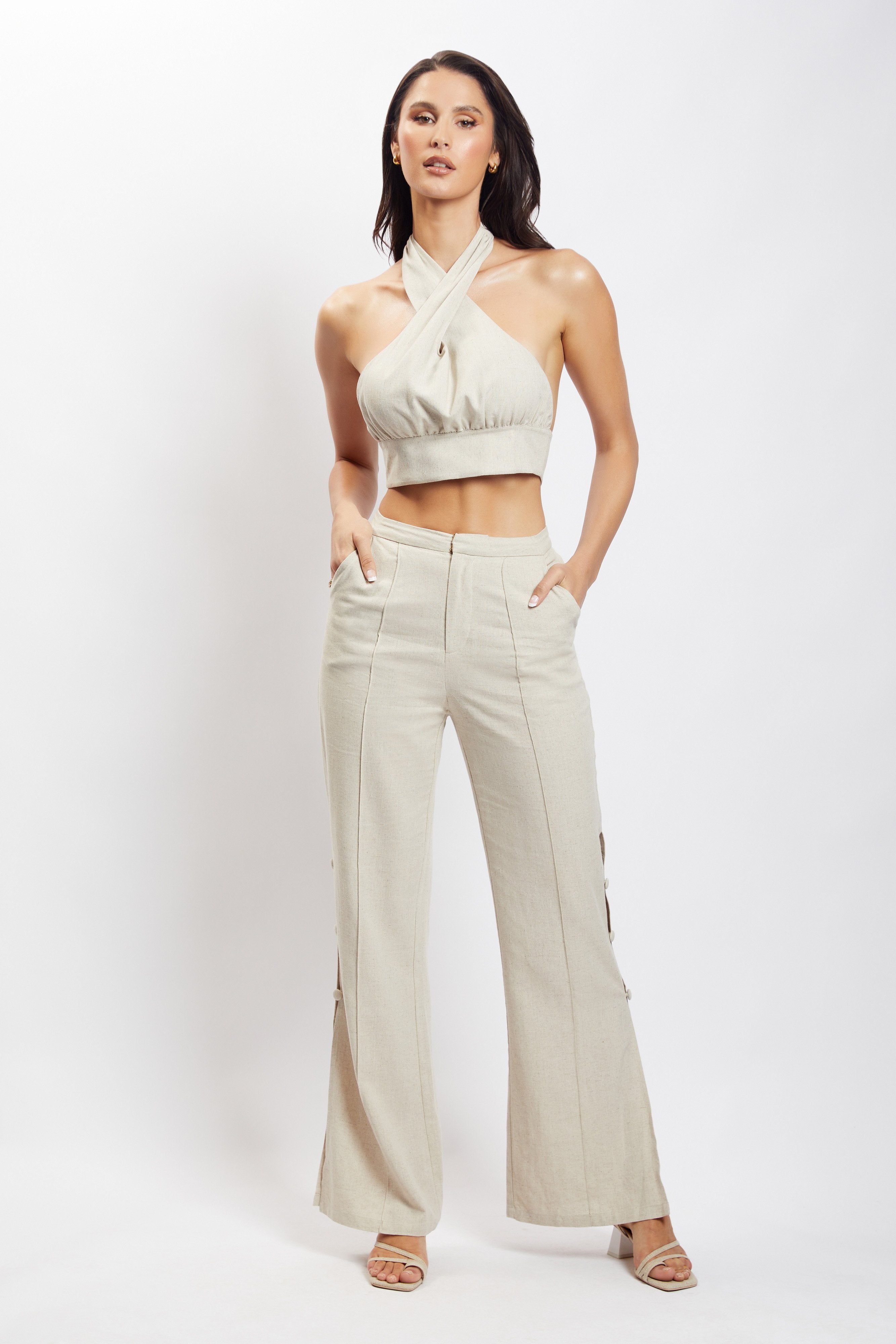 Lexi Linen Cut Out Side Pants - Natural