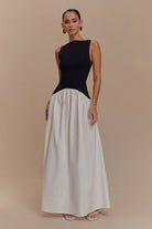 Acacia Contrast Sleeveless Maxi Dress - Black/White