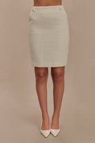 The ADDISON Boucle Knee Length Skirt offers a sophisticated, tailored look with its high-waisted design and classic boucle fabrication. Featuring front and back belt loops for added versatility, this skirt includes a side zip closure for a seamless fit. The knee-length cut and back vent ensure comfortable movement, while functional side pockets provide practical convenience. Perfect for both professional settings and polished casual wear, this skirt seamlessly combines style and functionality.