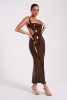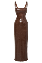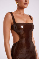 Adoria Sequin Cut Out Maxi Dress - Chocolate