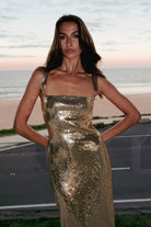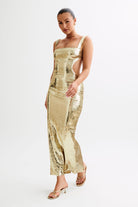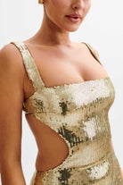 Adoria Sequin Cut Out Maxi Dress - Gold