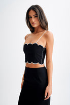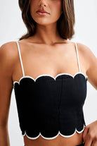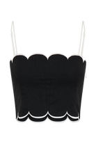Elegance meets sophistication in our ALESSIO Scalloped Linen Top, a timeless piece that exudes effortless style. The straight neckline offers a sleek and refined look, while delicate scalloped detailing along the neckline and hem adds a touch of feminine charm. Stand out with the contrast scalloping and strap design, creating a captivating visual appeal. With the convenience of a side zipper and adjustable straps, achieving the perfect fit has never been easier. Crafted from premium linen and fully lined for comfort, this top is as practical as it is chic, making it a versatile addition to your wardrobe for any occasion. Complete the look with the Alessio Scalloped Midi Skirt.