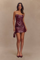Meet the ALLANA Faux Leather Strapless Top, a sophisticated statement piece designed to elevate any look. With its rounded neckline and strapless silhouette, this top beautifully highlights the shoulders. The longline cut adds a sleek, elongated effect, while a centre-back zip closure ensures a flawless fit. Fully lined for structure and comfort, this top is the perfect blend of elegance and edge. Pair it with the Coralia Faux Leather Bubble Mini Skirt for a striking ensemble that combines texture and shape—an unforgettable look for any occasion.