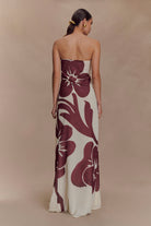 Amaya Strapless Chiffon Maxi Dress - Brown Deco Fleur Print