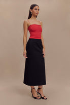 The AMBROSE Midi Skirt is a sophisticated and versatile piece designed to elevate any wardrobe. With its high-waisted fit and side zip closure, it offers a sleek, tailored silhouette that complements a variety of tops. The functional side pockets provide practical convenience, while the non-functional back pockets maintain a streamlined appearance. The midi length and straight shape ensure a flattering fit, and the side vent allows for ease of movement. Lined for added comfort and a refined finish, the Ambrose Skirt pairs beautifully with the Hadleigh Sleeveless Slinky Top for a chic, coordinated look perfect for both daytime and evening events.