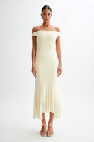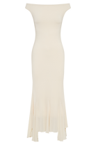 The ANALINA Slinky Handkerchief Midi Dress offers a sleek and stunning silhouette that perfectly marries classic charm with modern style. This elegant dress features a flattering Bardot neckline that highlights the shoulders and adds a touch of glamour. Designed with short sleeves and a bodycon fit, it contours gracefully to your shape, ensuring a sophisticated profile. The godet-lined hem introduces an unexpected flair, creating a dynamic and flowing movement as you walk. At a chic midi length and fully lined for premium comfort, the Analina Dress is a timeless piece for any occasion where style is a must.