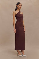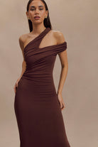 Anastasia One Shoulder Modal Midi Dress - Mahogany