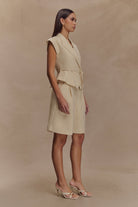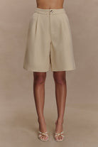 The ANDINA Linen Shorts offer a refined take on warm-weather dressing. Designed in a flattering high-waisted silhouette, these Bermuda-length shorts feature front pleats, side pockets, and back darts for a softly structured shape. The functional centre front fly and button closure add polish, while the relaxed fit and full lining ensure comfort from day to night. Pair with the Andina Short Sleeve Linen Top for a crisp, coordinated look made for spring.