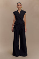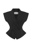 Make a statement in the ANDINA Short Sleeve Linen Top, where modern tailoring meets soft femininity. Designed with an asymmetric lapel neckline and wrap-fitted silhouette, this piece artfully frames the body while the back waist tie cinches for a flattering shape. The cap short sleeves add a polished touch, balanced by a refined button closure and full lining for all-day comfort. Whether dressed up or pared back with the Raya Mid Rise Wide Leg Linen Pant, this top delivers contemporary style with timeless appeal.