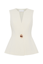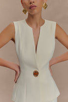 The ANGELIE Suiting Vest Top is a refined take on modern tailoring, designed to sculpt and flatter. Featuring a longline sleeveless silhouette with a sharp V-neckline and folded right lapel, this piece blends classic suiting elements with feminine flair. Panel detailing and a defined waist seam create structure, while a single waist button closure and kick-out flared hem offer shape and movement. Fully lined for a polished finish, pair it with the Angelie Suiting Maxi Skirt for a sharp, sophisticated set that goes beyond the expected.