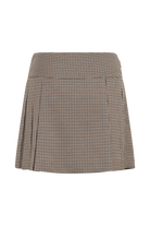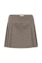 Angie Pleated Buckle Mini Skirt - Tan Check