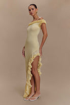 Arielle Off Shoulder Ruffle Midi Dress - Pastel Lemon