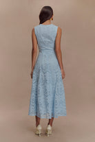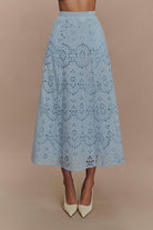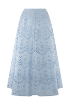 Arla Broderie Midi Skirt - Pale Cornflower Blue