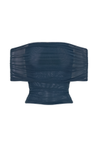 Arna Off Shoulder Mesh Crop Top - Midnight Blue