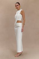 Make a statement with the ASTRID Suiting Midi Skirt, a perfect blend of sophistication and contemporary design. Featuring an asymmetrical waistline and a chic fold over flap detail, this skirt offers a unique twist on classic tailoring. The button detail at the side seam adds a touch of elegance, while the side split provides both style and ease of movement. Crafted in a flattering midi length, the straight silhouette of this skirt compliments a variety of looks, making it a versatile addition to your wardrobe. Pair it with the Astrid Asymmetric Sleeveless Suiting Top for a coordinated ensemble..