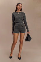 The AUBREY Knit Shorts are the epitome of chic, combining comfort with a flattering silhouette. These high-waisted shorts feature an elastic waist for a snug yet flexible fit, complemented by a stylish fold-over waist detail that adds a unique touch. The bodycon design enhances your figure, while the unlined knit construction ensures breathability and ease of movement. Perfect for lounging or casual outings, pair the Aubrey Knit Shorts with the Shelby Knit Cardigan for a stylish and effortlessly relaxed ensemble.