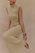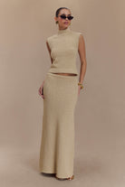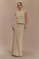 The AZALEA Sleeveless Knit Top is the perfect blend of chic style and everyday comfort. Featuring a trendy high neckline and a sleek sleeveless design, this longline top offers a flattering silhouette that pairs effortlessly with your favourite bottoms. Crafted from soft boucle knit, it adds a touch of texture and elegance to any outfit, while the unlined construction ensures a lightweight feel, ideal for layering or wearing on its own. For a polished look, pair the Azalea with the Moira Boucle Maxi Skirt, creating a cohesive ensemble that’s perfect for any occasion.