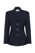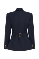 The BELLAMY Cinched Blazer is a statement piece that combines timeless elegance with a contemporary edge. Featuring a button front closure, classic collar and lapel, and strong structured shoulders enhanced with shoulder pads, this blazer offers a powerful silhouette. The long sleeves and functional welt pockets add both style and practicality, while the centre back vent ensures ease of movement. Fully lined for a luxurious finish and with a back belt to cinch the waist, it creates a flattering hourglass figure. Pair with the Aberley Crop Top and Angie Pleated Buckle Mini Skirt for a sophisticated, tailored look.