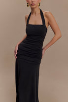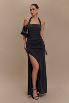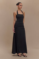 Bentley Peached Jersey Halter Maxi Dress - Black