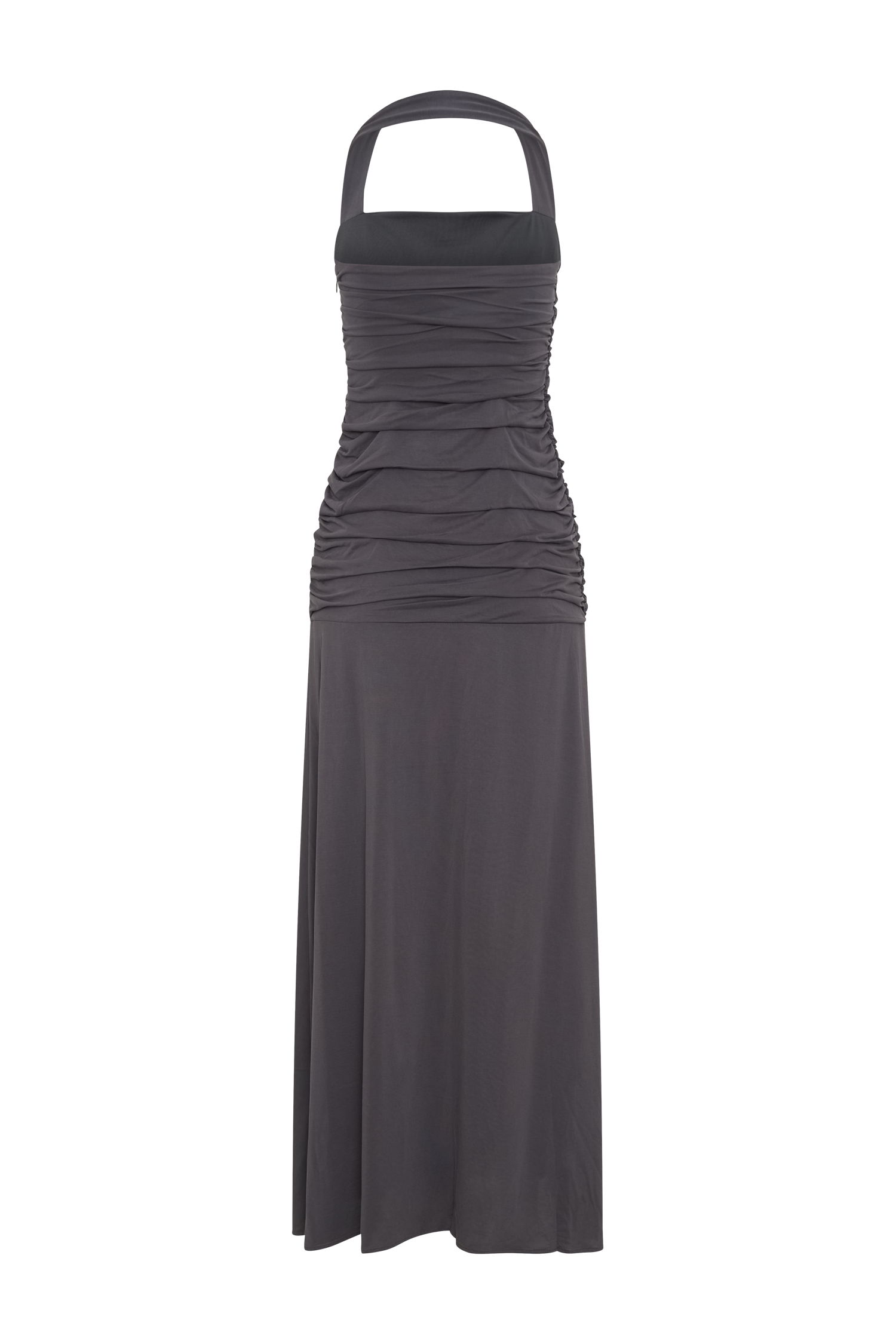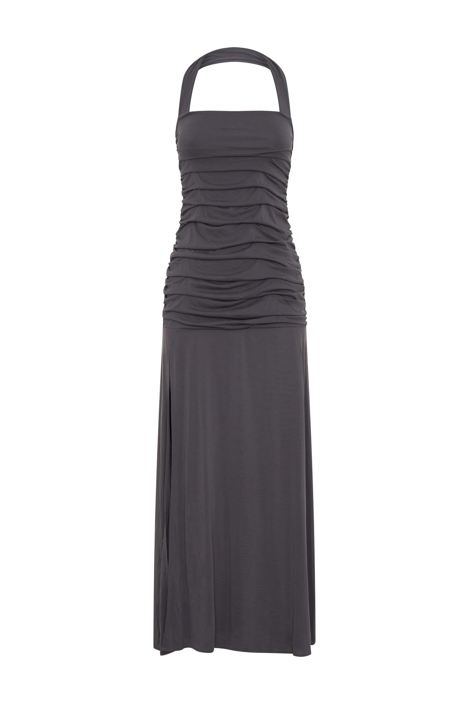 Bentley Peached Jersey Halter Maxi Dress - Charcoal
