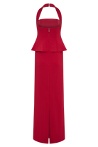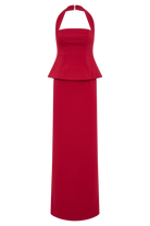 The BERTIE Peplum Halter Maxi Dress is a timeless blend of structured elegance and flattering design. Featuring a chic halter neckline and a fitted bodice, this dress sculpts your figure beautifully while the structured peplum adds a touch of dramatic flair. The sleek, fitted maxi pencil skirt gracefully elongates the silhouette, while the centre back zip ensures a smooth, seamless finish. Perfect for an evening out or special occasion, this dress offers a sophisticated yet bold look, combining classic style with modern appeal.