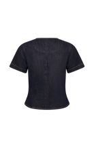Bethany Short Sleeve Buttoned Denim Top - Washed Indigo Blue