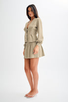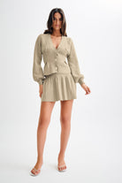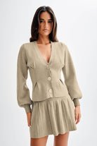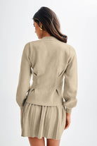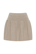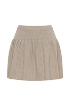 The BEVERLY Knit Pleated Mini Skirt is designed to make a stylish statement. Featuring a high-waisted fit and a flat yoke, this skirt offers a flattering silhouette. The ruched lower skirt adds a touch of texture and movement, while the mini length keeps it playful and chic. Crafted from a soft, unlined knit, it ensures comfort throughout the day. Pair it with the Beverly Knit Cinched Cardigan for a coordinated and sophisticated look that’s perfect for any occasion.