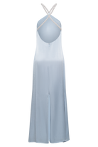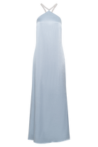 Blanche Satin Pearl Halter Maxi Dress - Cornflower Blue