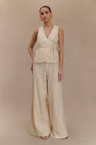 Brandi Linen Straight Leg Pant - Wheat Marle