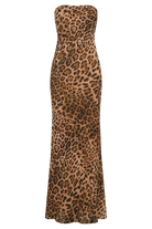 Breanna Strapless Chiffon Maxi Dress - Leopard Print