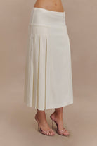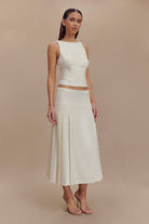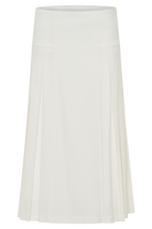 The BRIGETTE Pleated Midi Skirt is a stylish and elegant piece designed to elevate your wardrobe. Featuring a mid-rise waist and a flattering midi length, this skirt combines sophistication with versatility. The panelling detail adds a contemporary touch, while the pleated side skirt enhances movement and visual interest. A side zip closure ensures a seamless fit, and the unlined construction provides a lightweight feel. Perfectly matching with the Brigette Boat Neck Longline Top, this skirt creates a chic, coordinated ensemble ideal for both professional and formal occasions.