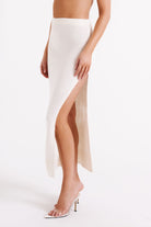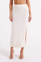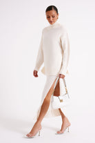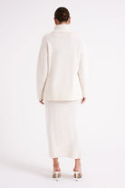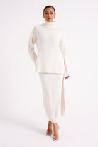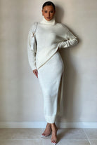 BRITANNY is a super soft knit midi skirt, designed with elastic waistband and soft knit material. For an added sense of style, it is crafted with ribbed knits at the hemline. With its cosy silhouette and oversized fit, you can easily wear it for running errands, strolling, or lounging. Match it with the Britanny High Neck Knit Jumper for a warm and trendy winter aesthetics.