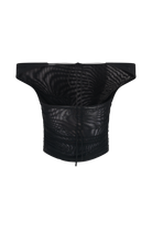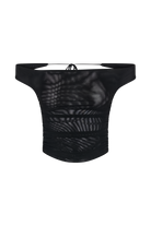 Introducing the BROOKLYN Mesh Crop Top, a chic fusion of style and sensuality. Featuring a wide scoop neckline, this top beautifully frames the neckline, while the dolphin hem shape adds a touch of playful movement. The ruched waist enhances your curves, creating a flattering silhouette, and the open back with a delicate tie detail lends an unexpected yet elegant twist. Crafted from double-layered mesh fabric for a semi-sheer look, the cropped length pairs perfectly with high-waisted pieces. For a seamless, head-turning ensemble, style it with the Arna Mesh Maxi Skirt for a sophisticated and coordinated finish.