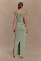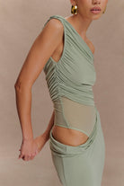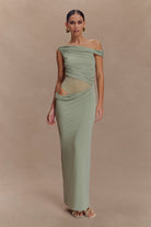 Callen One Shoulder Slinky Maxi Dress - Sage