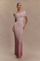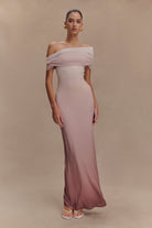 Cassandra Off Shoulder Slinky Maxi Dress - Neutral Ombre