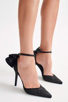 Charmed Satin Bow Heel - Black