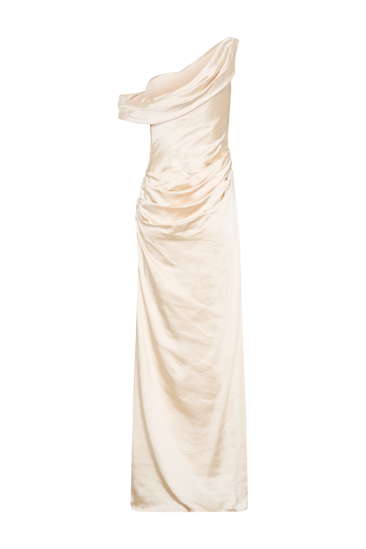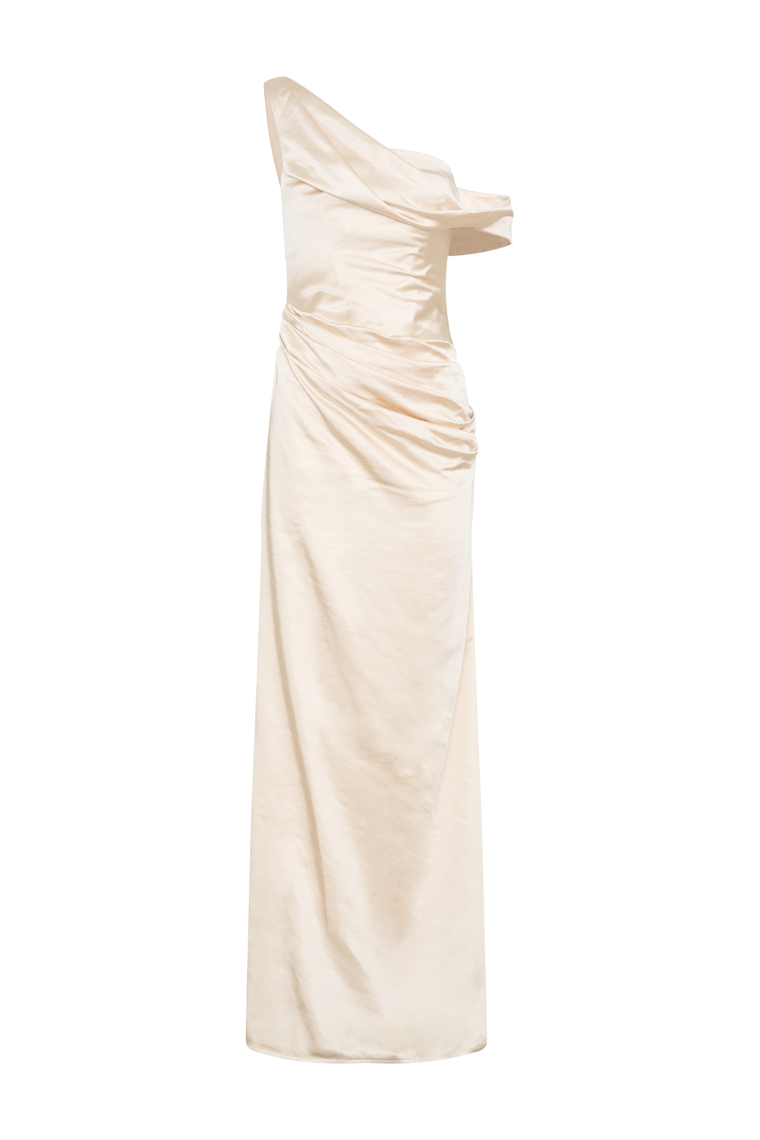 Dalia Off Shoulder Satin Maxi Dress - Blush Gold