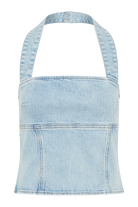 The DAYNA Denim Halter Top is a sleek, structured take on denim that’s perfect for day or night. Featuring a halter neckline and a fitted silhouette, this top boasts bust and princess panel seams for a contoured fit. The side zip makes for easy wear, while grip tape along the neckline keeps it comfortably in place. Style it with high-waisted jeans or the matching Caitlin Mid Rise Denim Flare Jeans for a statement look that’s effortlessly cool.