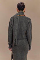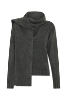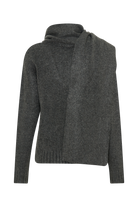 Ella V Neck Knit Jumper With Scarf - Charcoal Marle